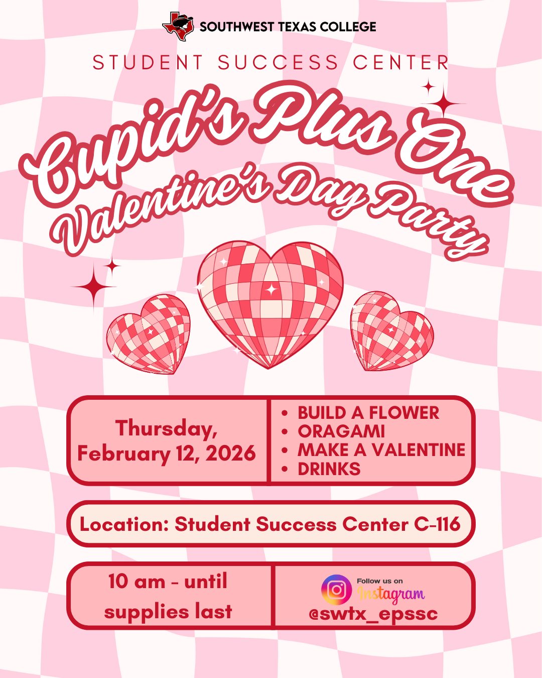 SWTX Students—Your Next Step Starts Here! Discover new opportunities at the Transfer & Career Fair on Wednesday, February 11th, in the Matthews Student Center Ballroom from 11:00 am to 1:00 pm. Connect with universities, explore career paths, and get one step closer to your future!