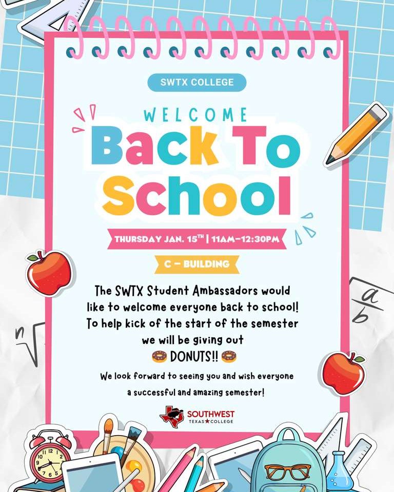 Jan. 15 | Welcome Back to School | Building C | 11:00 am - 12:30 pm