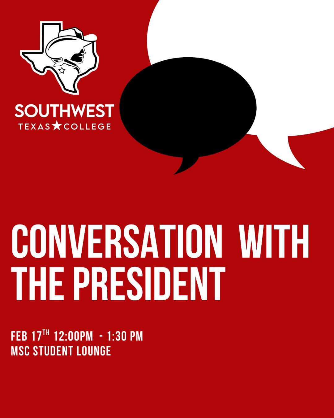 Feb. 17 | Conversation with the President | Matthews Student Center Student Lounge | 12:00 pm - 1:30 pm
