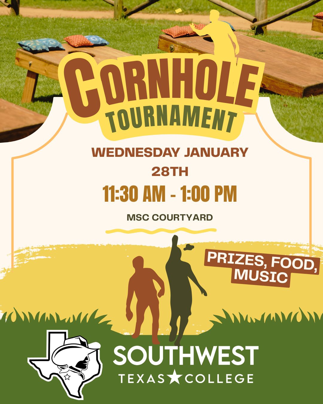 Jan. 28 | Cornhole Tournament | Courtyard | 11:30 am - 1:00 pm