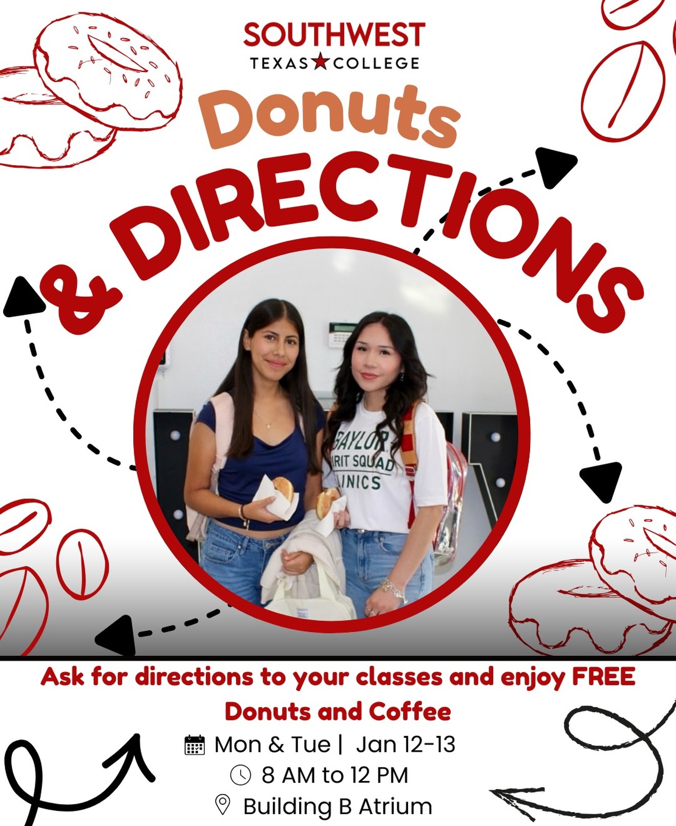 Jan. 13 | Donuts & Directions | Building B, Atrium | 8:00 am - 12:00 pm