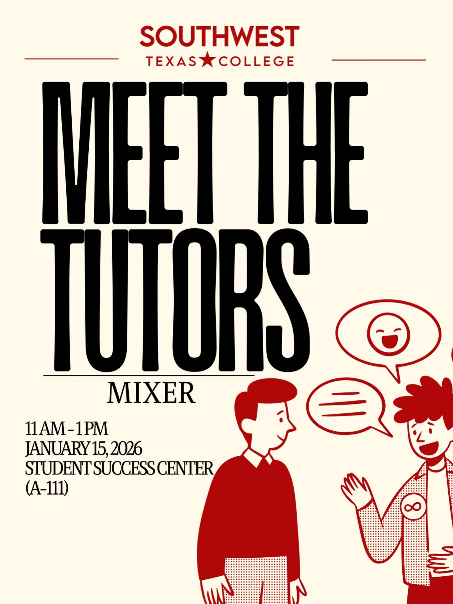 Jan. 15 | Welcome Mixer: Meet the Tutors | Building A, Student Success Center | 11:00 am - 1:00 pm