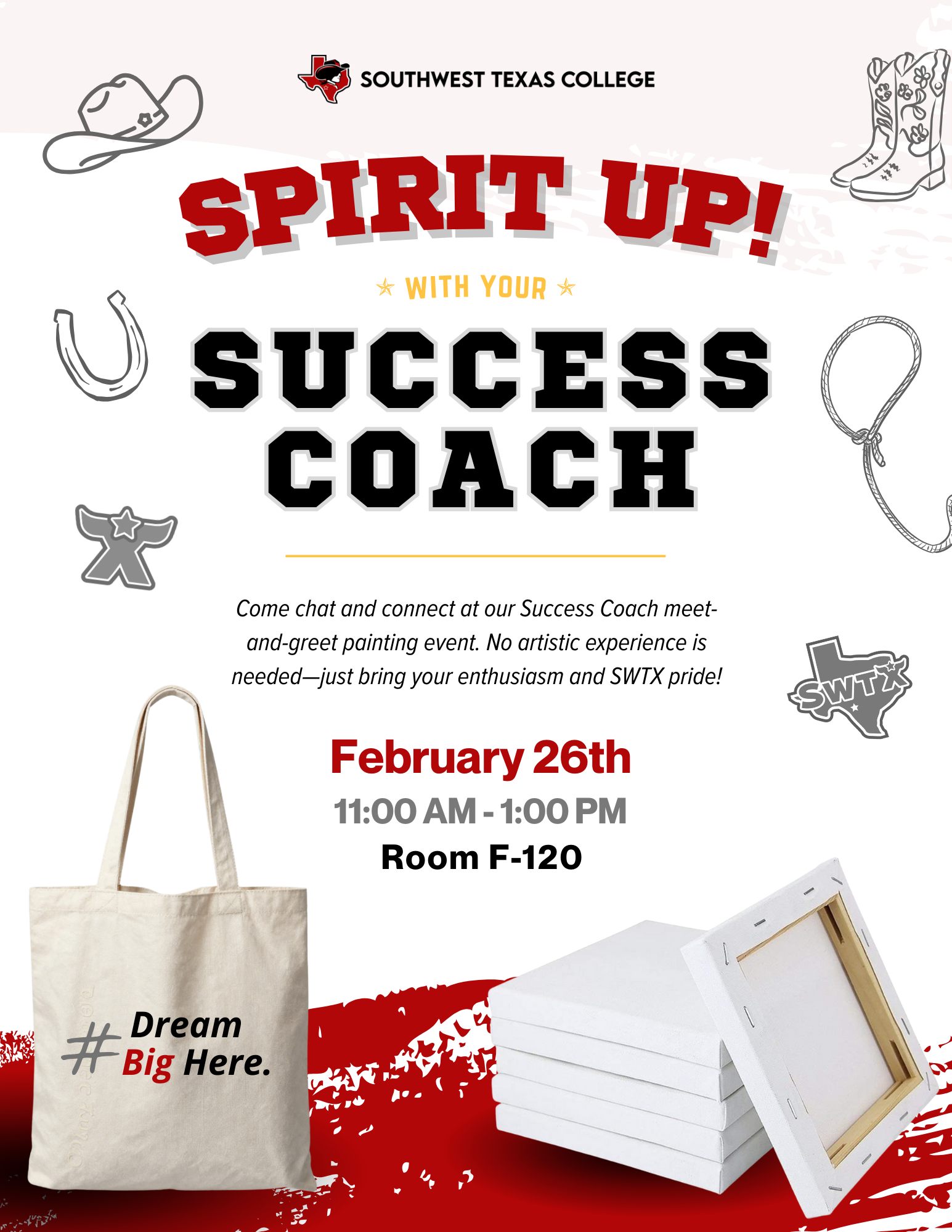 Feb. 26 | Spirit Up! with your Success Coach Meet & Greet Painting | Building F, Room F-120 | 11:00 am - 1:00 pm